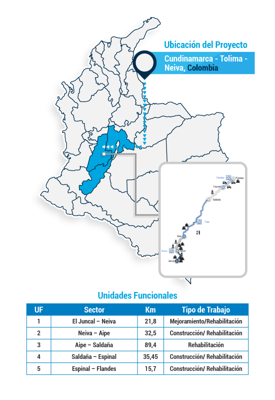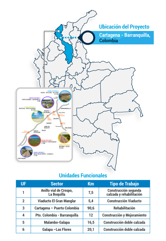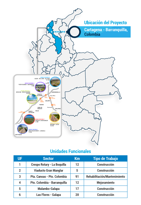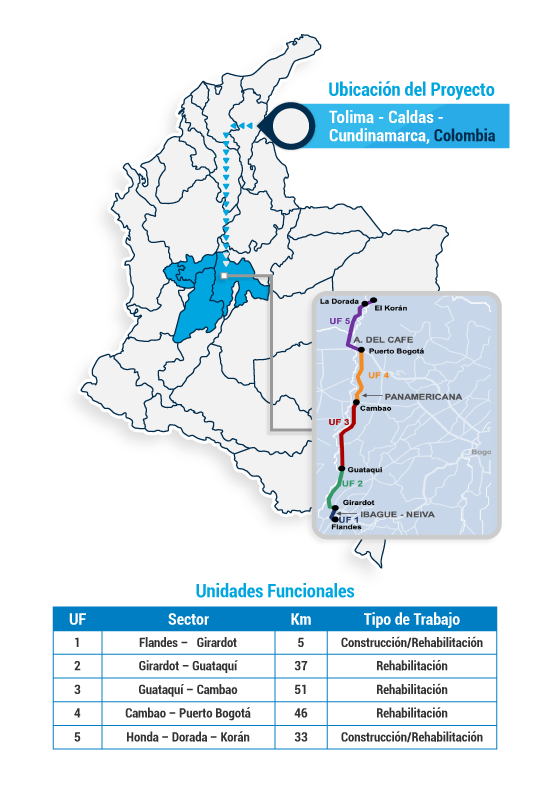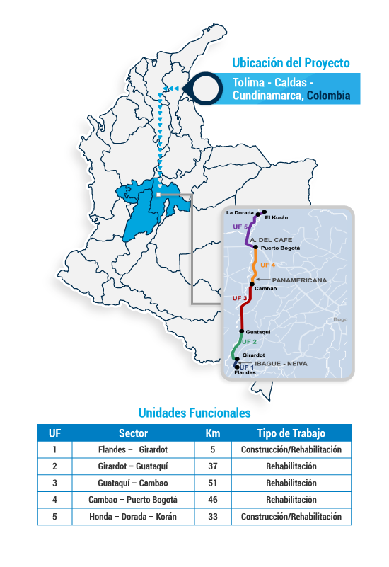 - Conecta a Bogotá con la costa Caribe del país mediante la construcción de una vía de doble calzada y el mejoramiento de los corredores viales existentes entre los municipios de Villeta de Cundinamarca y Ciénaga de Magdalena.