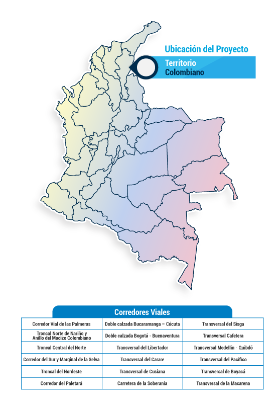 - Es un grupo de corredores viales localizados en diferentes regiones del país, los cuales tenían como objetivo optimizar la movilidad, conectividad, producción y comercialización entre diversas regiones de Colombia.