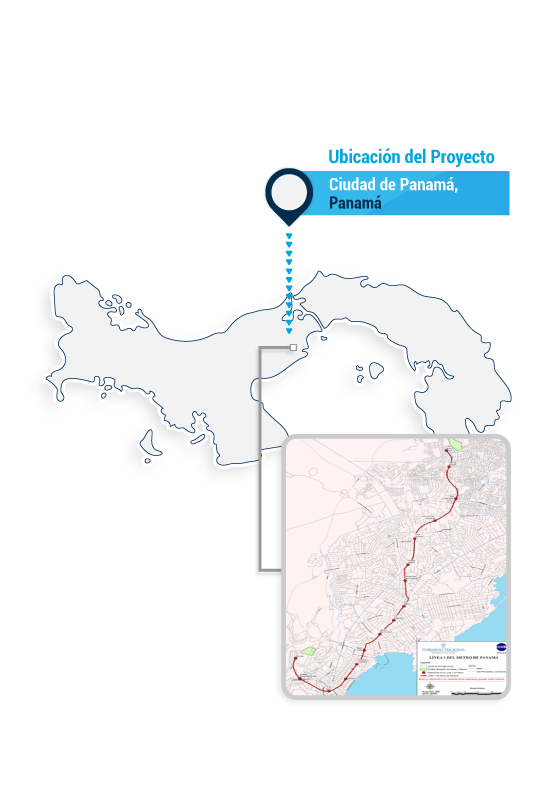 - Se enfoca principalmente en la estructuración financiera para la Primera Línea del Metro de Panamá, la cual abarca aproximadamente 16 kilómetros y su principal función es conectar la estación terminal de buses, en Albrook, con la estación San Isidro en el norte del Área metropolitana de la ciudad de Panamá.